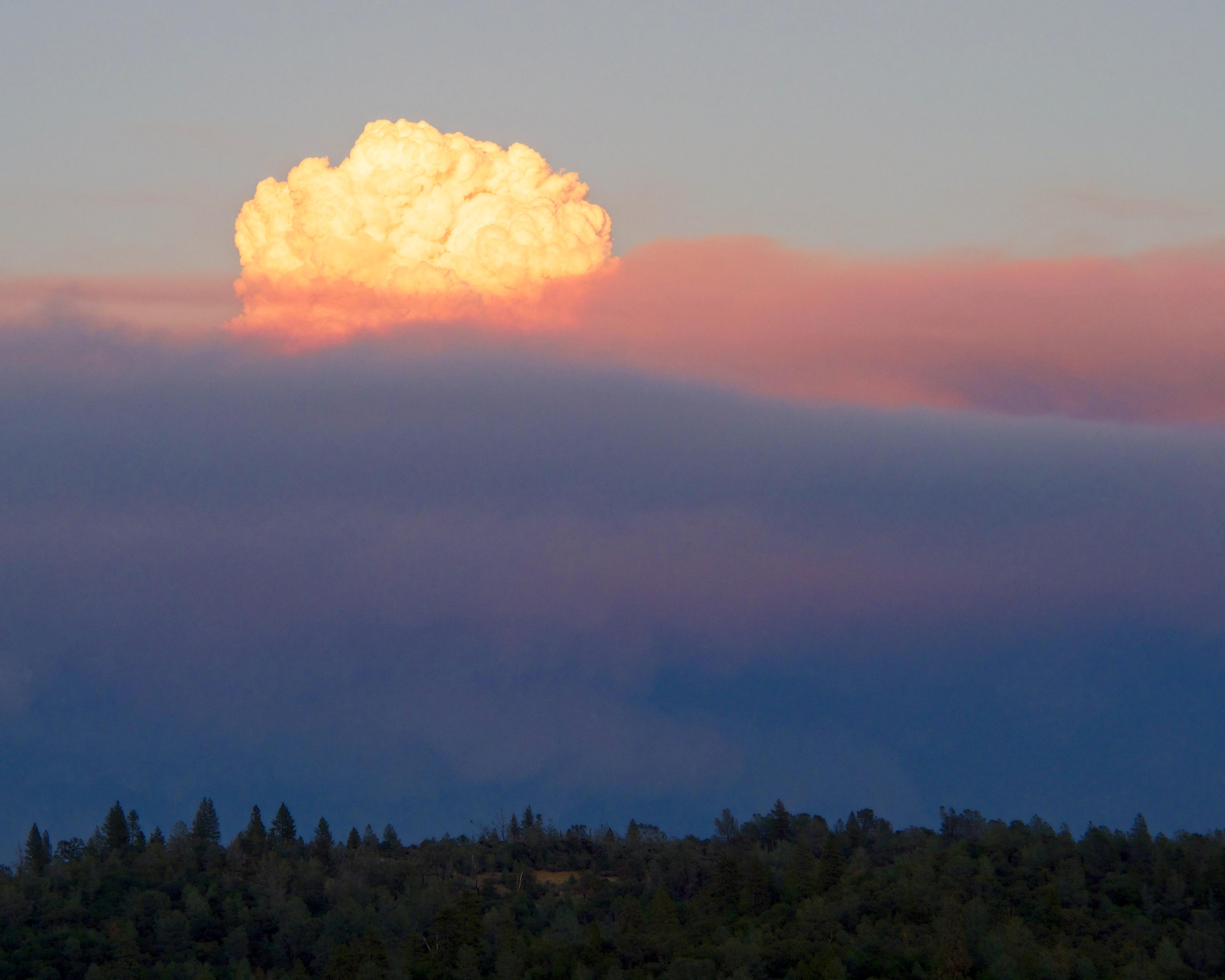 My daughter and I took a drive up the hill to photograph the rather remarkable pyrocumulus clouds we could see filling the sky. There were lots of campers and trucks driving in the opposite direction and we had to wonder if they were people being evacuated or who might have lost their homes. As we stood at a scenic overlook the mood was somber and quiet. Everyone was awed, scared, and overwhelmed by the enormity of what we were seeing.